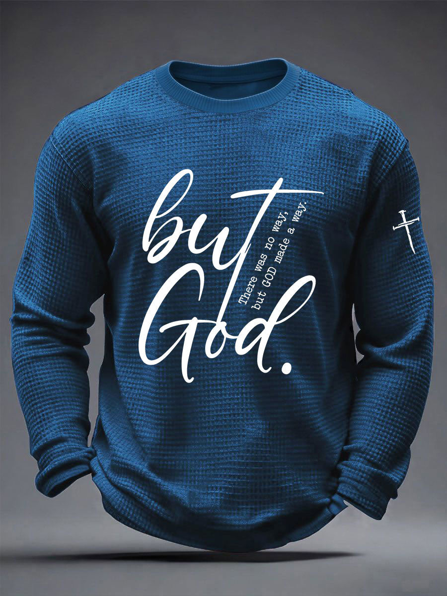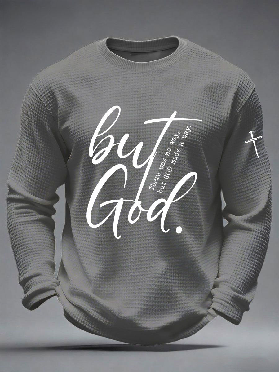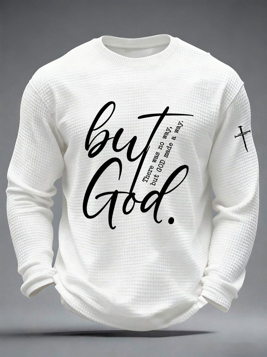 Men's But God Waffle Print Casual T-Shirt