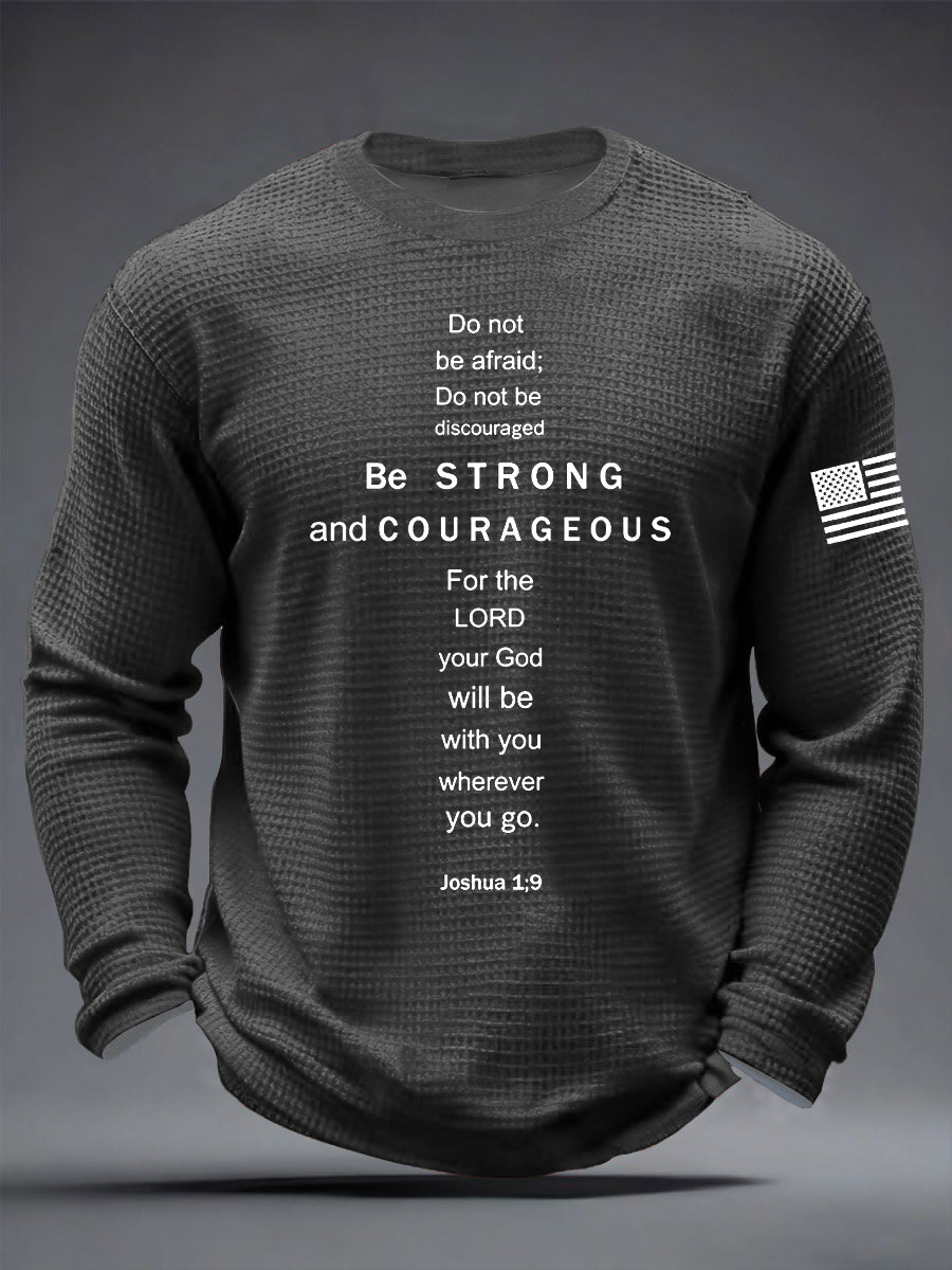 Men's Christian Be Strong and Courageous Cross Waffle Long Sleeve T-Shirt