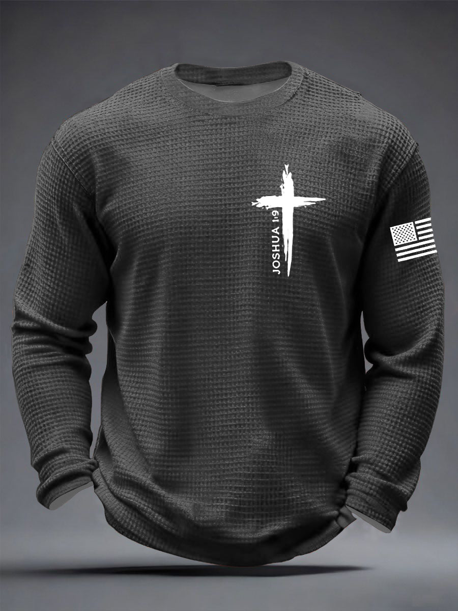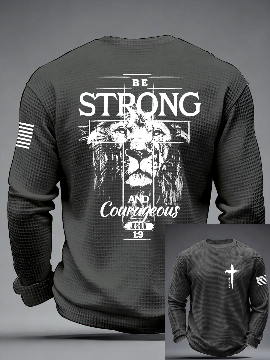 Men's Christian Cross Be strong and courageous sign Joshua 1:9 Waffle Long Sleeve T-Shirt
