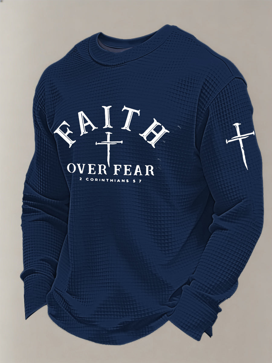 Men's Christian Faith Over Fear Cross Printed Waffle Sweatshirt