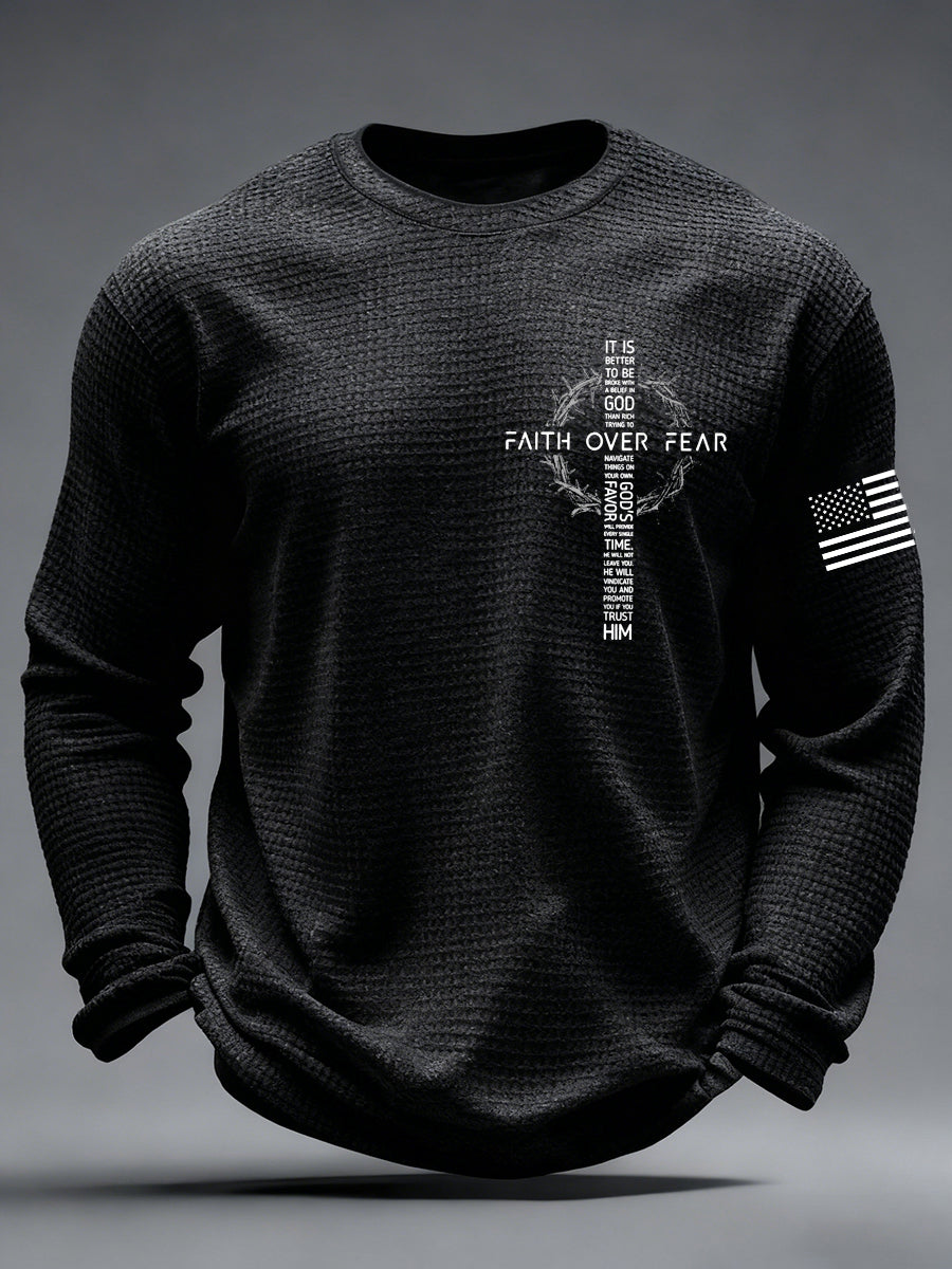 Men's Faith Over Fear Print Casual Waffle Long Sleeve T-Shirt