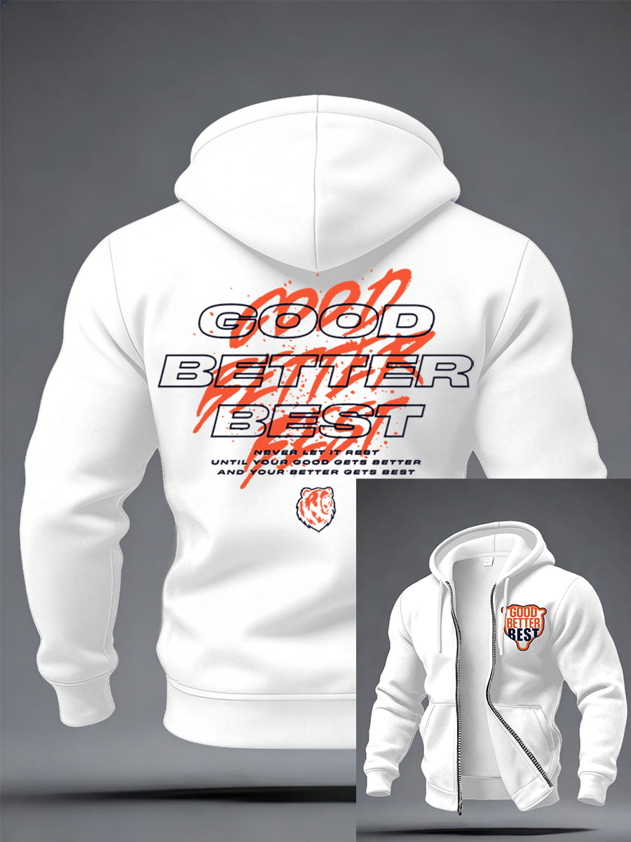 Men's Good Better Best Print Football Fans Gameday Casual Zipper Hoodie