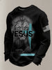 Men's Jesus Lion USA Flag Print Casual Long Sleeve T-Shirt