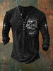 Men's Vintage Skull Faith Cross Printed Henry Long Sleeve Shirt